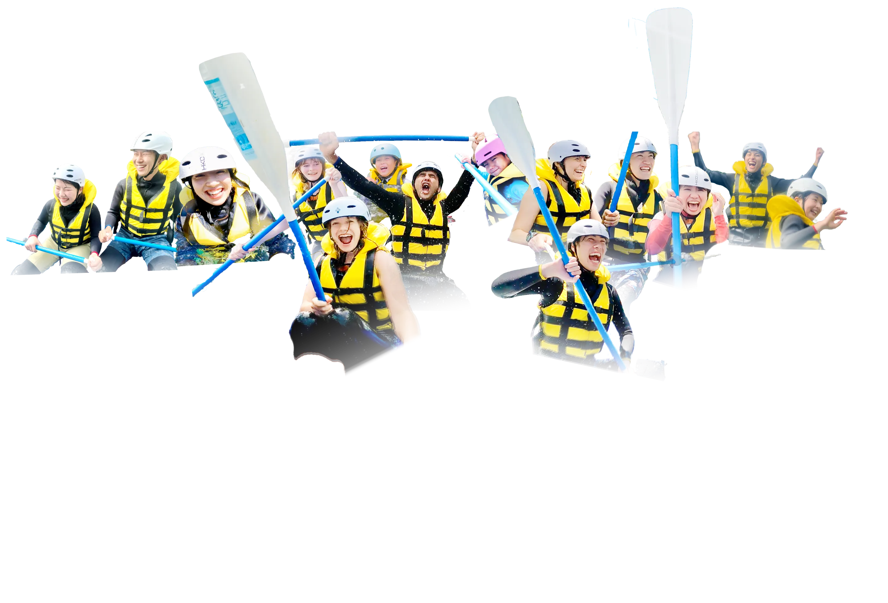 ワクワクとチームビルディングをお届けするニューヤードラフティングでは、ボートを漕ぐことに加え、豊富なアクティビティ(遊び)をご用意!わざとボートをひっくり返したり、崖から飛び込んだり、ゲーム感覚で仲間とわちゃわちゃしながら、チームとしての結束力やコミュニケーションを生み出します!